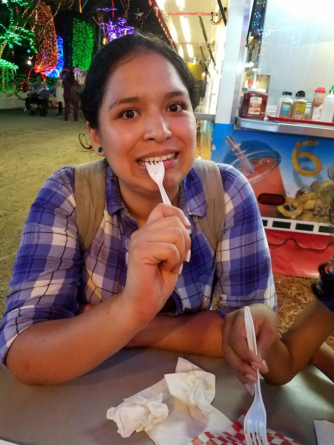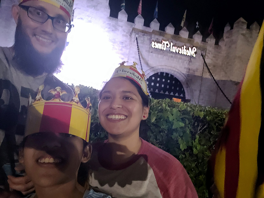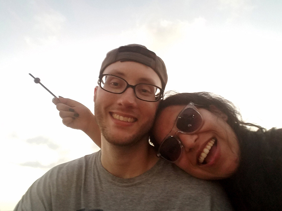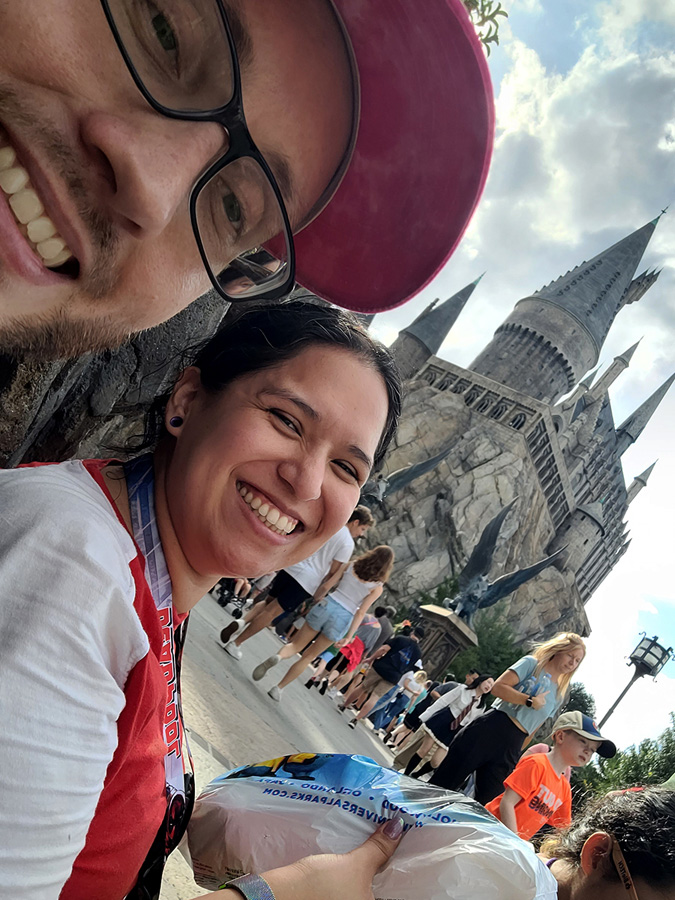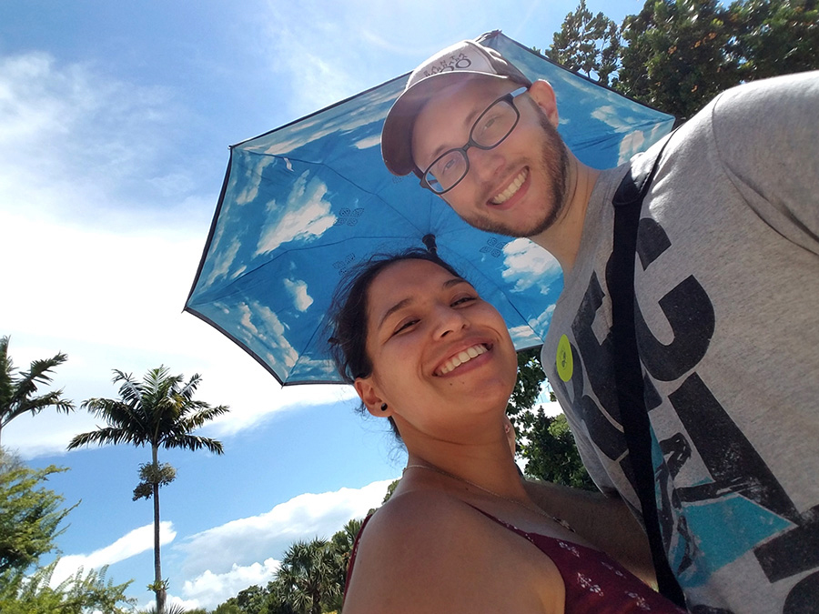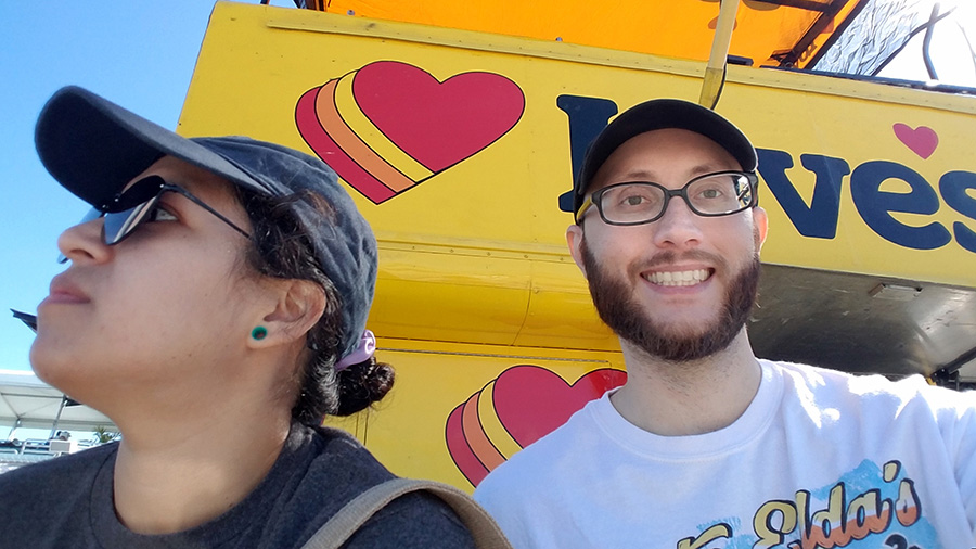 We’re children of the internet, and that’s how we met (shout out to OKCupid). Our first date was at Kendall Ice Arena on Cinco de Mayo, 2018. We try to go every year.